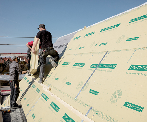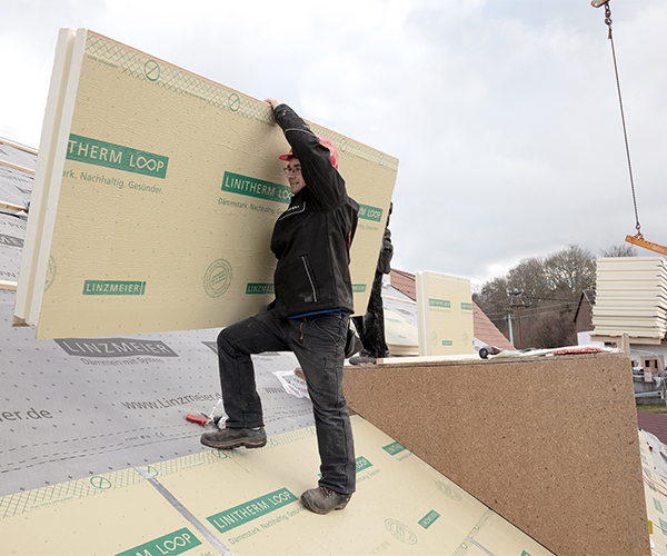 Die lange Nutzungsdauer und die gleichbleibenden Dämmeigenschaften machen PU-Dämmstoffe wirtschaftlich und nachhaltig. Darüber hinaus bietet Linzmeier mittlerweile mit dem Produkt LINITHERM LOOP Dämmplatten aus rund 60% Biomasse* an (*PU-Rohstoffe nach Biomassenbilanzverfahren, bzw. biobasiert) und produzieren diesen CO² neutral. Die dünnen und leichten LINITHERM LOOP Produkte werden aus Rohstoffen hergestellt, die wiederum aus landwirtschaftlichen Pflanzenabfällen wie ausgedroschenem Mais, Pflanzenstängeln oder Stroh generiert werden. Lebensmittel werden in der Dämmstoffproduktion nicht eingesetzt. Ein weiterer Schritt, um den Dämmstoff noch nachhaltiger zu machen.